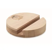 Bambusz borítású, kerek műanyag mobiltartó öntapadós rögzítéssel.