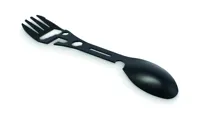 Rozsdamentes acél multifunkciós evőeszköz. Tartalmaz kanalat, villát, állítható villáskulcsot, üvegn...