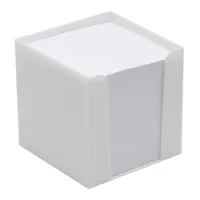 <b>NEVER FORGET kocka alakú jegyzettömb</b>: műanyag doboz nagy nyílással és 900 db fehér, famentes ...