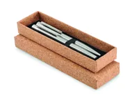 Fém tollkészlet csavarmechanikás golyóstollal és kupakos roller tollal, parafa tolltesttel, hozzá il...