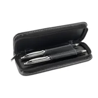 Golyóstoll és roller toll szett cipzáras PU bőr tokban, kontrasztos varrással. A golyóstoll kék, a r...