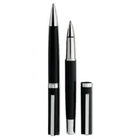 Fém roller és golyóstoll fekete díszítéssel, króm kiegészítőkkel, fekete karton díszdobozban. Kék to...