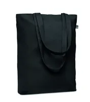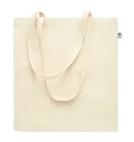 Fogyasztás utáni újrahasznosításból készült pamut bevásárlótáska hosszú fülekkel. 65% újrahasznosíto...