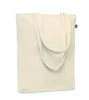 Organikus vászon bevásárlótáska hosszú fülekkel és alsó toldással. 270 g vastag anyag.