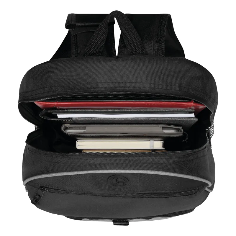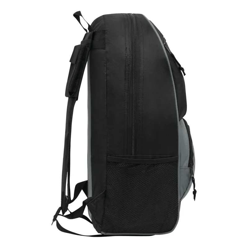 RELAX multifunkciós hátizsák, mobiltelefon-tartó zsebbel, átvezetési lehetőséggel fülhallgatókábel számára, két hálós oldalzsebbel, párnázott vállszíjakkal és hátrésszel