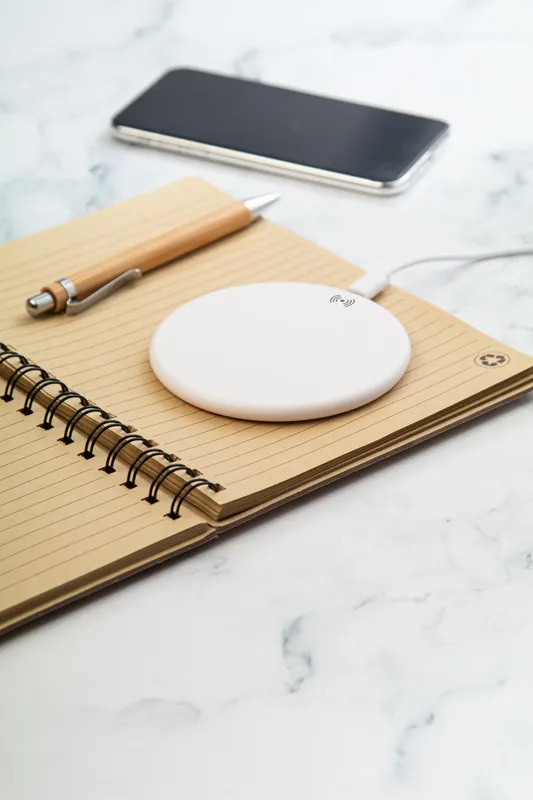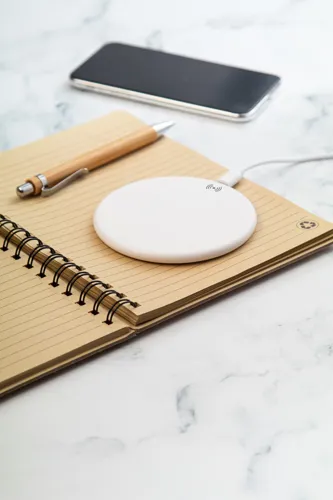 Újrahasznosított ABS műanyag vezeték nélküli gyorstöltő (15W). USB töltőkábellel szállítjuk.