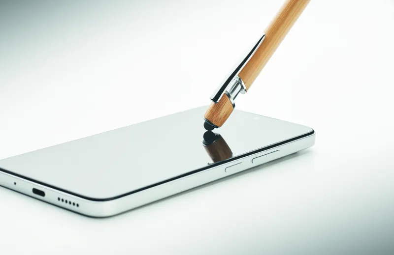Nyomógombos golyóstoll bambusz tolltesttel, érintőheggyel. Kéken író betéttel. FSC®-certified | FSC 100%, N5.7, FSC-C213206