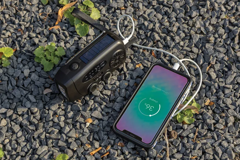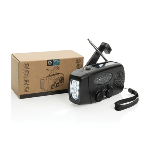 Legyél felkészülve bármilyen helyzetre a RescueWave vészhelyzeti rádióval, amely AM/FM rádiót, napelemet, 1W-os zseblámpát, USB kimenetet és USB-C bemenetet kínál. A beépített 1800mAh akkumulátorral feltöltheted telefonodat is. A kézi tekerő segítségével 1 perc tekerés 5 perc rádiózásra vagy 30 perc lámpahasználatra elegendő. Teljes feltöltéssel akár 15 órán át működik rádióként, vagy 8 órán át zseblámpaként. Az eszköz RCS tanúsítvánnyal rendelkező, újrahasznosított anyagokból, köztük reciklált ABS műanyagból készült. Az újrahasznosított tartalom a termék súlyának 38%-a. PVC-mentes, FSC® csomagolásban érkezik.