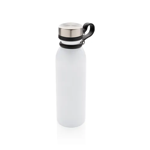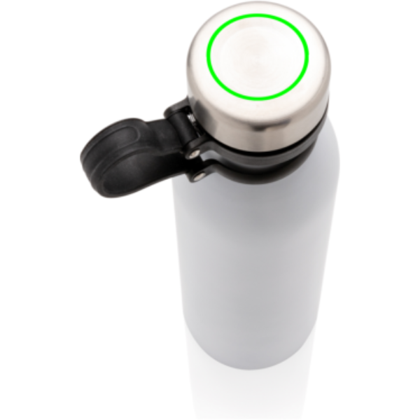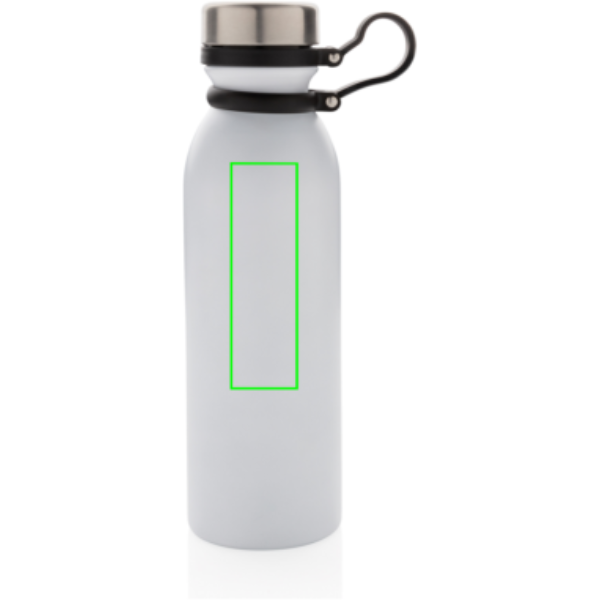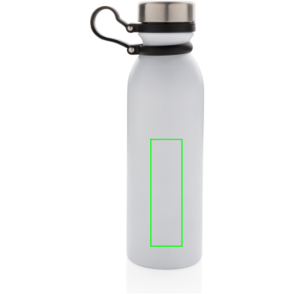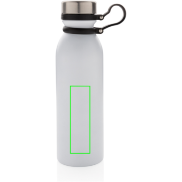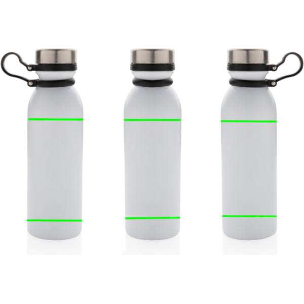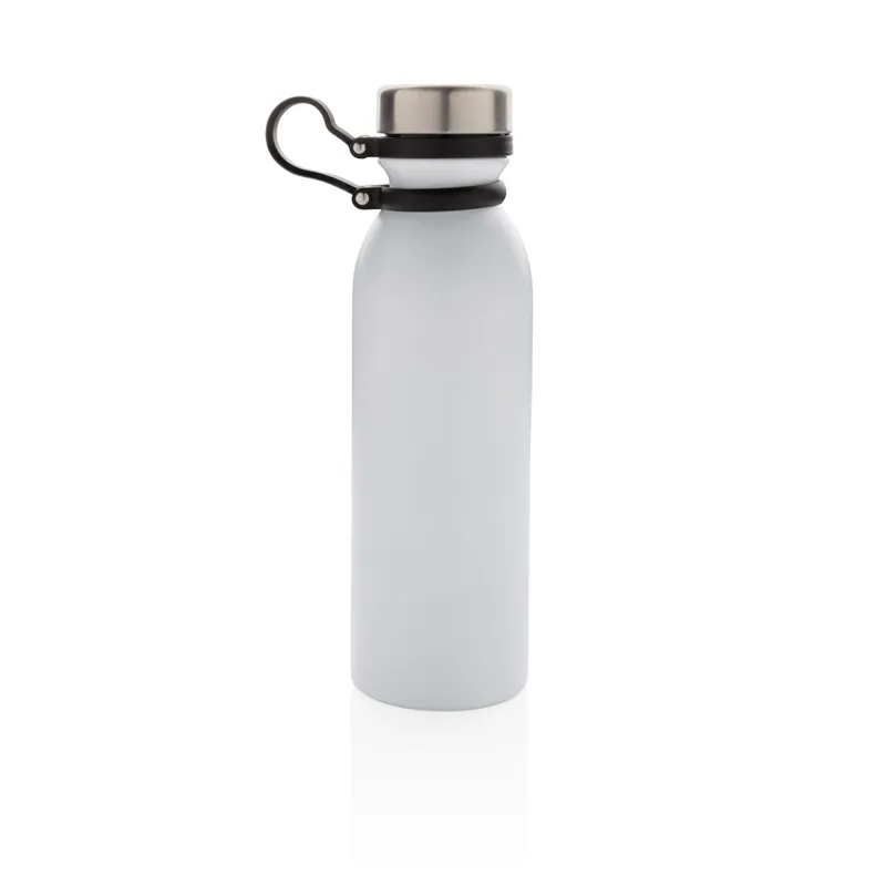Szivárgásmentes, réz vákuumszigetelt palack a tetejéhez csatlakoztatott fekete szilikon hurokkal így a palack egy kézzel is könnyen használható. Duplafalú vákuum kialakítás réz szigeteléssel ezáltal 8 órán át melegen és 24 órán át hidegen tartja a benne lévő folyadékot. Kialakításának köszönhetően a palack külső felén nem lép fel kondenzáció. Többféle színben. A fehér szín piszkos fehér, PMS kódja Cool Gray 1. Űrtartlma: 600 ml.