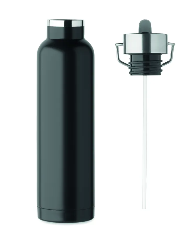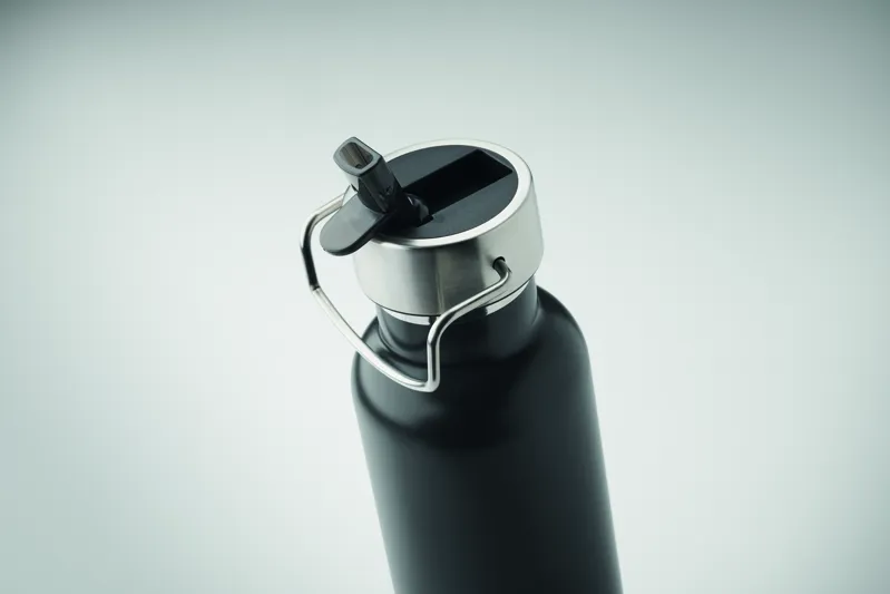 Duplafalú termoszpalack újrahasznosított rozsdamentes acélból (90% újrahasznosított rozsdamentes acél és 10% rozsdamentes acél), beépített szívószállal és fogantyús fedéllel. Űrtartalom: 660 ml.