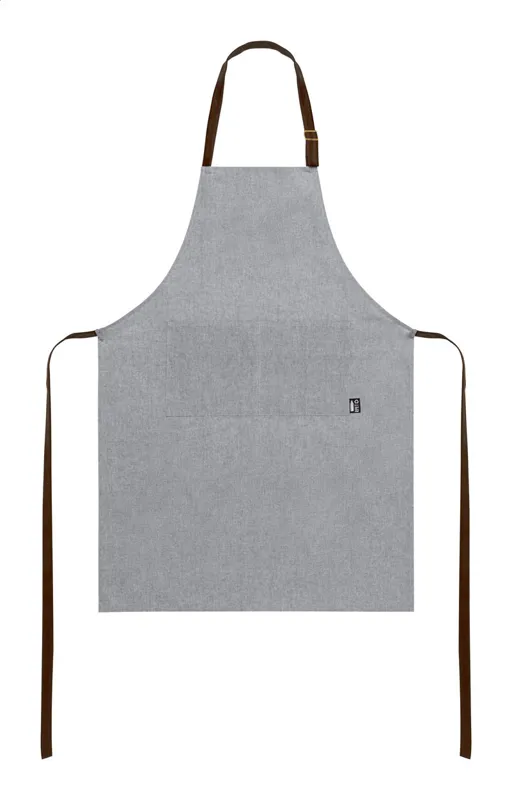 RPET poliészter kötény elülső zsebekkel és állítható pántokkal.