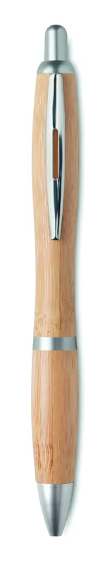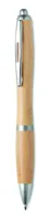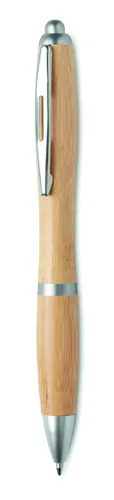 Nyomógombos golyóstoll bambusz toltesttel, ABS részekkel. Kéken író betéttel. A bambusz természetes anyag, színében, mintázatában és méretében esetenként eltérő lehet.