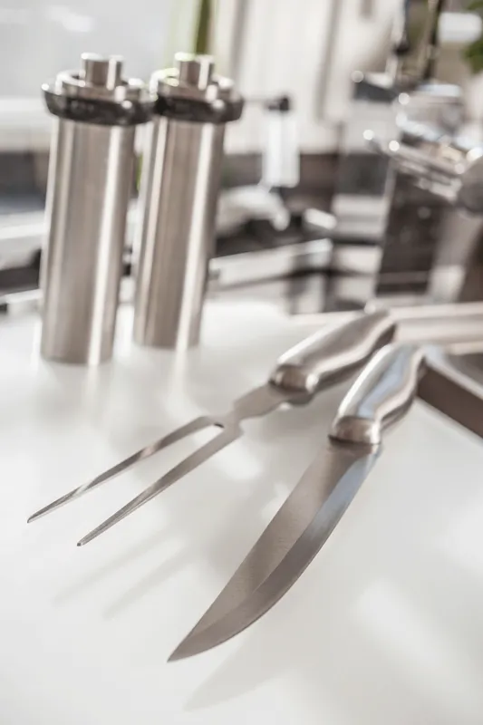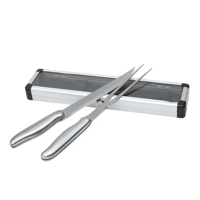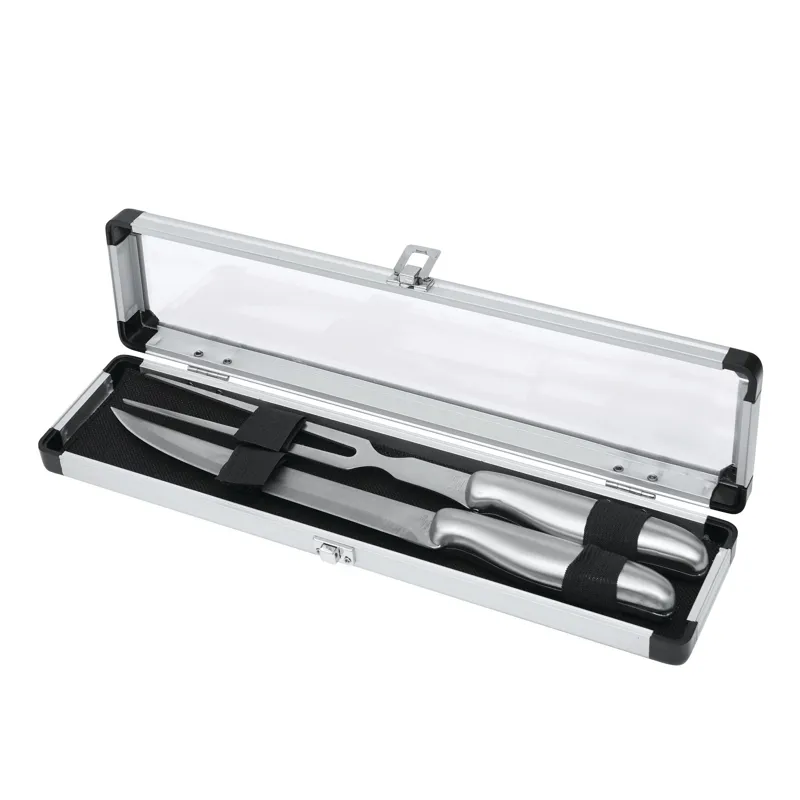 ROASTBEEF rozsdamentes acél étkészlet, tartalmaz kést, villát, alumínium tokban, átlátszó tetővel.