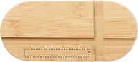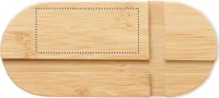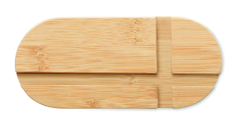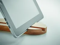 Bambusz tablet- vagy okostelefon-állvány. Ez a természetes anyagból készült állvány alkalmas mind okostelefonok, mind táblagépek megtámasztására. Ideális, ha olvasni vagy filmet nézni szeretne kényelmesen, anélkül, hogy a készüléket a kezében kellene tartania. A bambusz természetes anyag, színében, mintázatában és méretében esetenként eltérő lehet. FSC®-certified | FSC 100%, N5.7, FSC-C213206