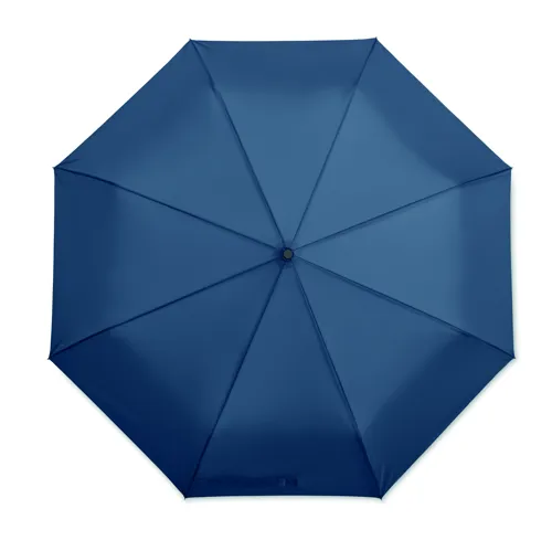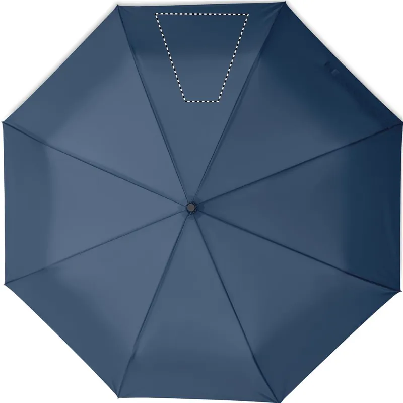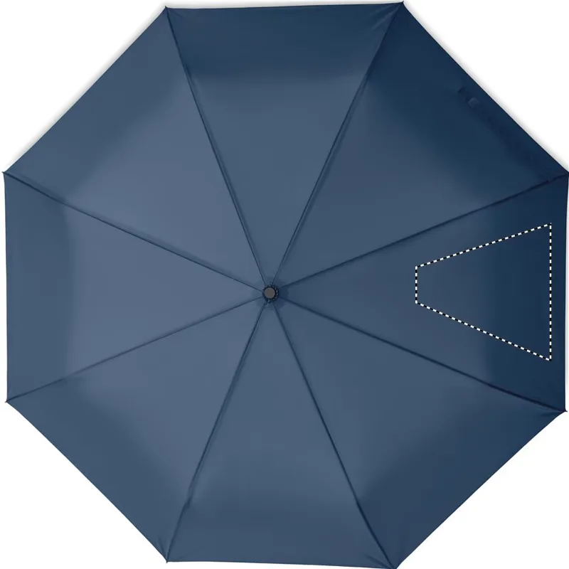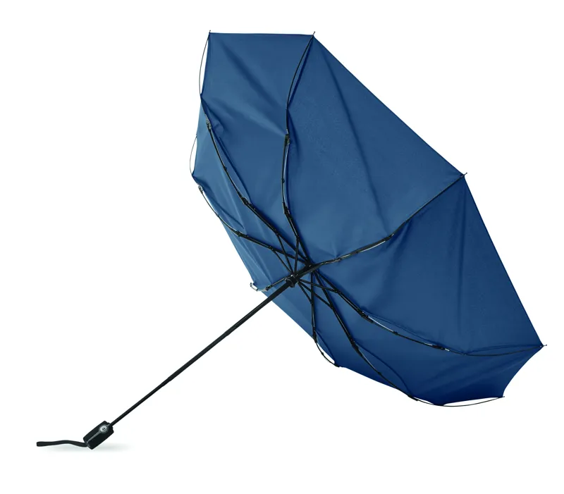 27 colos, 3 szakaszos összecsukható, automatikusan nyíló és záródó, szélálló esernyő. 190T nyersselyem anyagból készült, fekete bevonatos acél szárral. Üvegszálas bordák, fekete PP fogantyú nyomógombbal. Hozzáillő tokban.