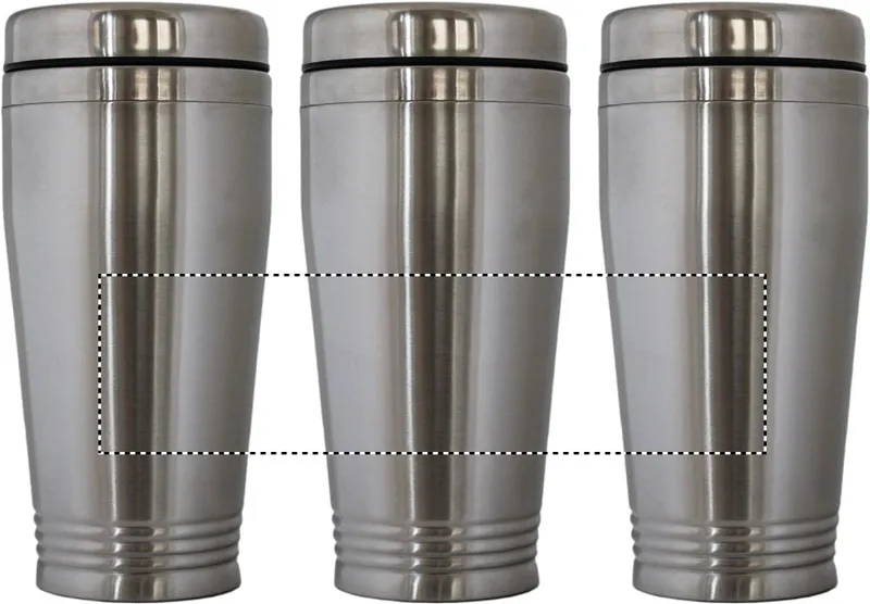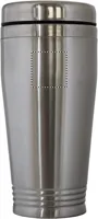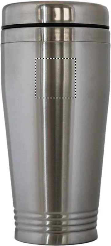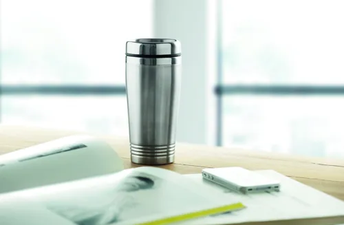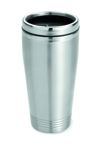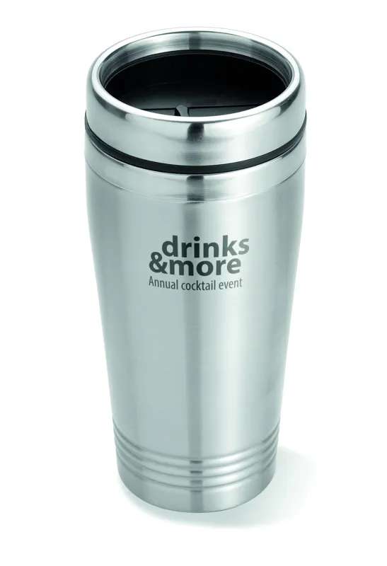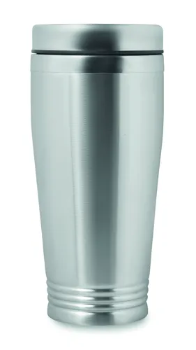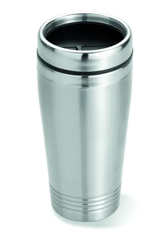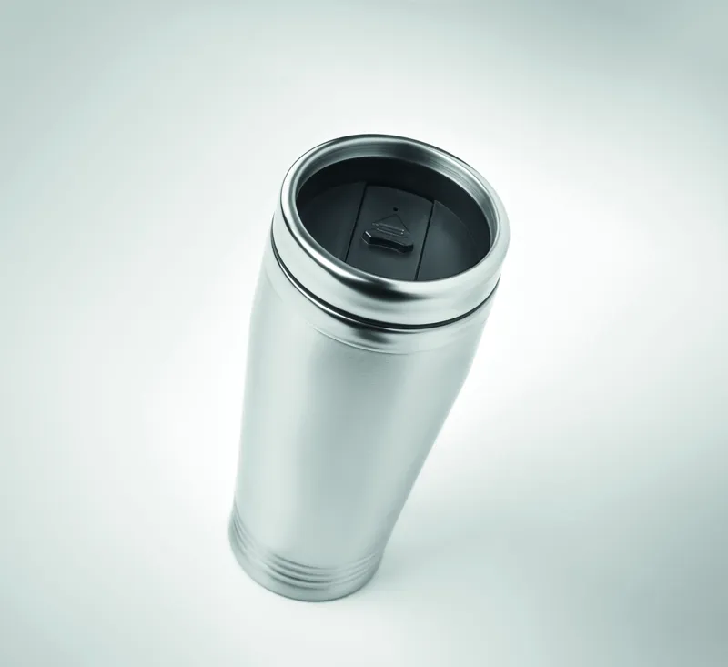 Duplafalú rozsdamentes acél úti bögre fekete PP tetővel. Űrtartalom: 400 ml.