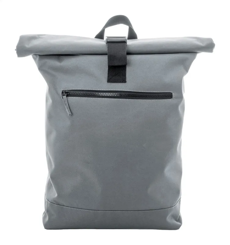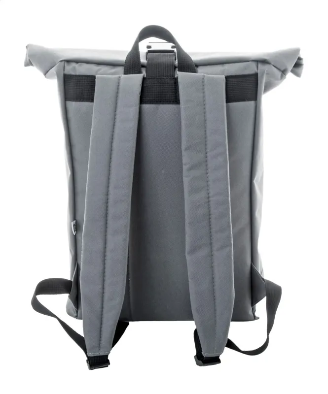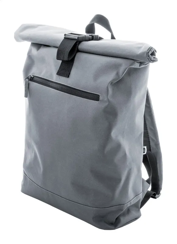 RPET rolltop hátizsák csatos zárral, cipzáros elülső zsebbel, párnázott laptop (15") rekesszel, párnázott hát- és vállpántokkal. 600D RPET poliészter, megkülönböztető RPET címkével.