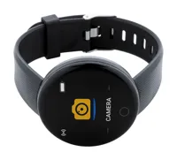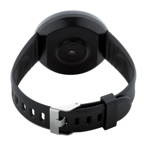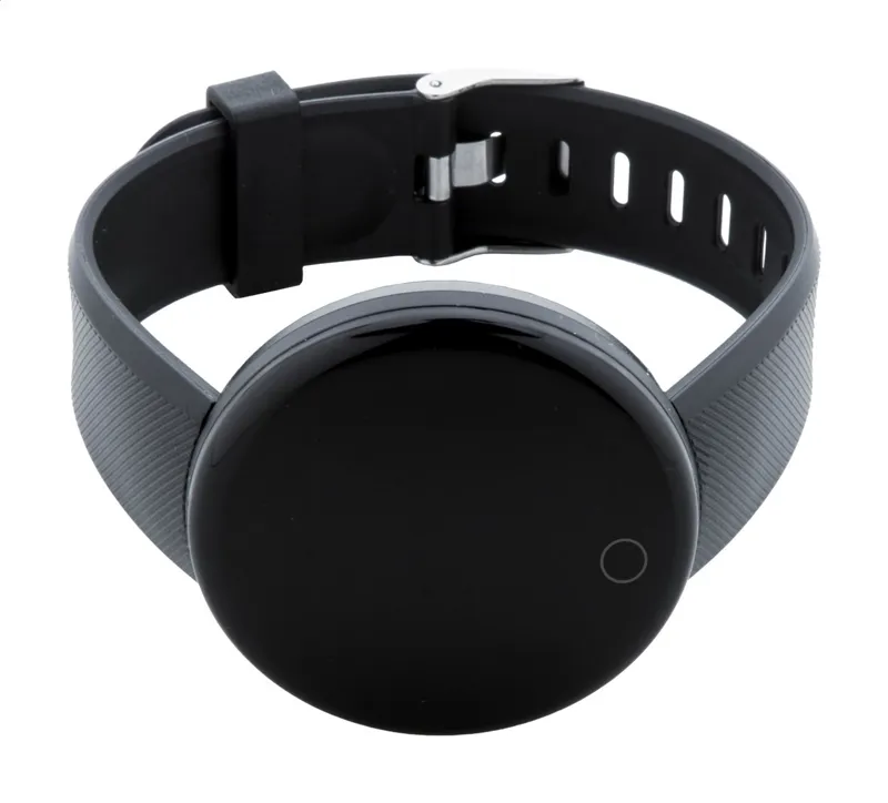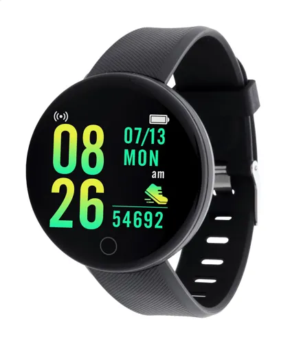 Többfunkciós vezeték nélküli okosóra ABS műanyag házban, 1,44" TFT érintőképernyővel, 180 mAh újratölthető akkumulátorral és TPU szíjjal. Számos egészségfigyelő és intelligens funkcióval rendelkezik, többek között pulzusszám-, vérnyomás- és oxigénszintmérő. Csatlakoztatható okostelefonokhoz egy ingyenes iOS és Android alkalmazással. IP65 vízálló.