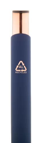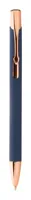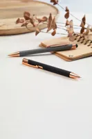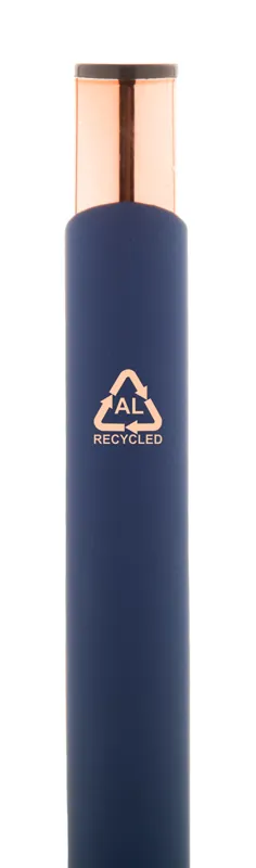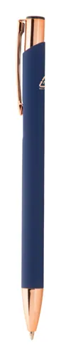 Újrahasznosított alumínium golyóstoll gumírozott felülettel és rózsaarany részekkel. Speciális bevonattal rendelkezik, amely különlegesen fényessé teszi a gravírozott emblémát. Kék tollbetéttel szállítjuk.