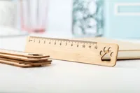 12 cm hosszú vonalzó bambusz furnérból, kivágott motívummal díszítve.