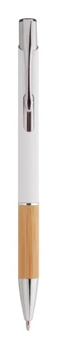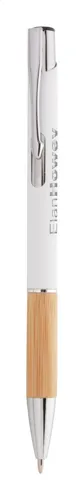 Alumínium golyóstoll bambusz markolattal, gumírozott felülettel és kék tollbetéttel. Speciális bevonattal rendelkezik, amely különlegesen fényessé teszi a gravírozott emblémát.