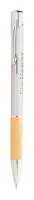 Alumínium golyóstoll bambusz markolattal, gumírozott felülettel és kék tollbetéttel. Speciális bevonattal rendelkezik, amely különlegesen fényessé teszi a gravírozott emblémát.
