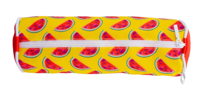 Egyediesíthető, kerek, 600 RPET poliészter tolltartó, cipzárral. Az ár tartalmazza a szublimációs emblémázás költségét a termék teljes felületén és az egyedi RPET címkét. Minimális rendelési mennyiség: 50 db.