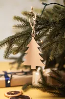 Fából készült karácsonyfadísz kender zsinórral.