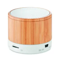 4.2 vezeték nélküli hangszóró ABS műanyagból, bambusz házban, LED kijelzővel, SD kártya bemenettel, kihangosító funkcióval. 1 db újratölthető 450 mAh lítium-ion elemmel, AUX / USB kábellel szállítjuk. Teljesítmény: 3W, 3 Ohm és 5V. Üzemidő kb. 3 óra. A bambusz természetes anyag, színében, mintázatában és méretében esetenként eltérő lehet.