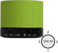 5.3 vezeték nélküli hangszóró gumírozott ABS anyagból. SD kártya port és AUX/USB kábel. A működéshez szükséges 1 db újratölthető 450 mAh lítium- ion elemmel szállítjuk. Telefon kihangosító és FM rádió funkció. Teljesítmény: 4 Ohm, 5V és 3W. Üzemidő kb. 3 óra.