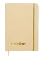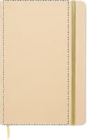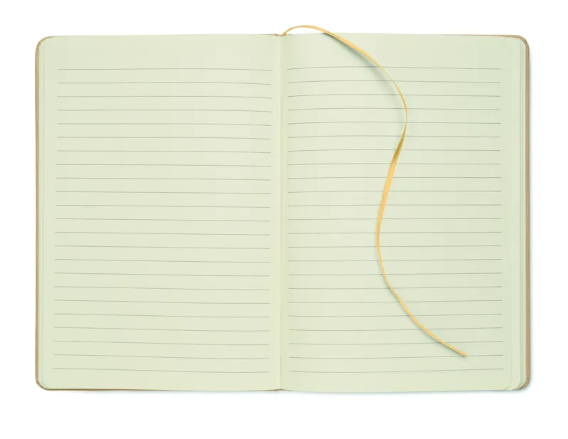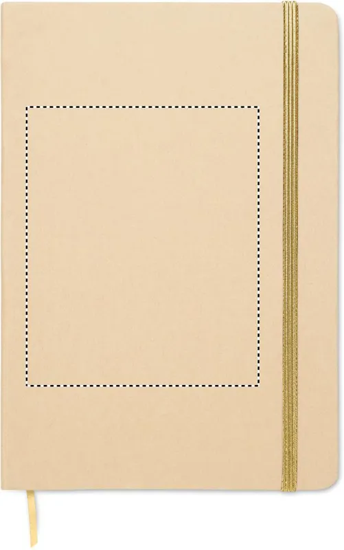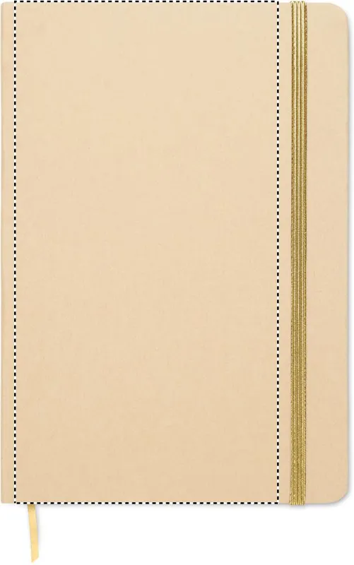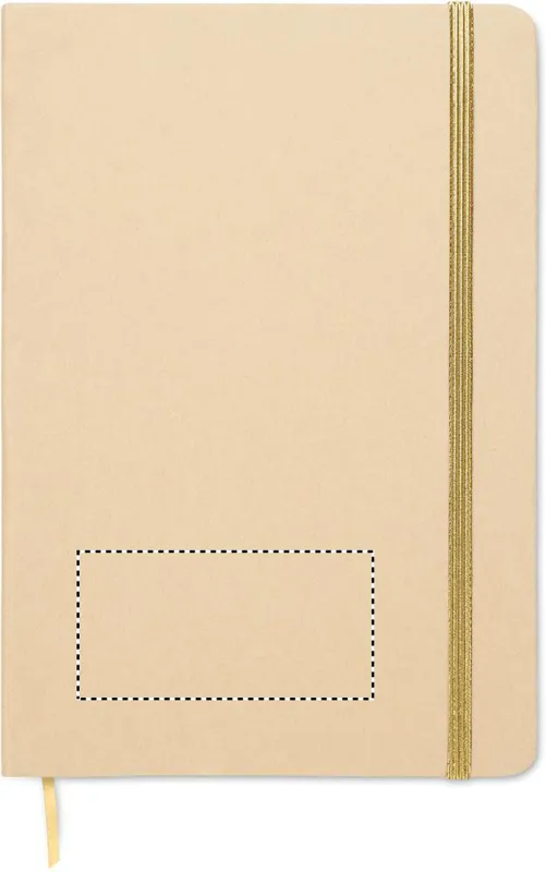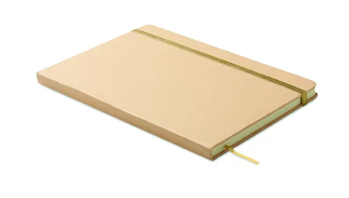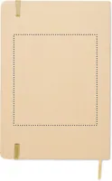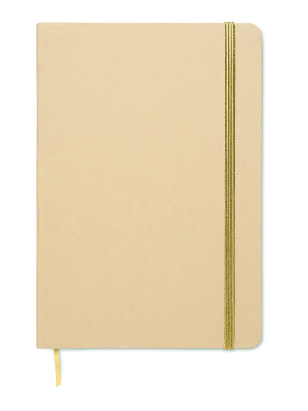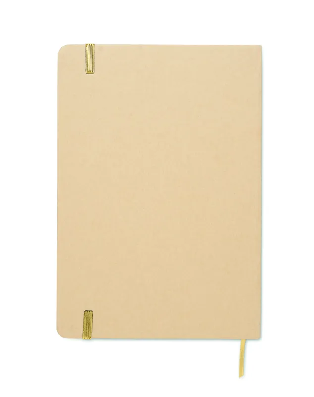 A5 jegyzetfüzet keménytáblás, újrahasznosított karton borítóval. Cérnafűzött. 160 vonalas oldal (80 lap) újrahasznosított papírból. Elasztikus zárópánt és könyvjelző szalag, melyek színe a gravírozás után, a bézs borító réteg alól megjelenő színhez illeszkedik. FSC®-certified | FSC MIX CREDIT, P7.1, FSC-C213206