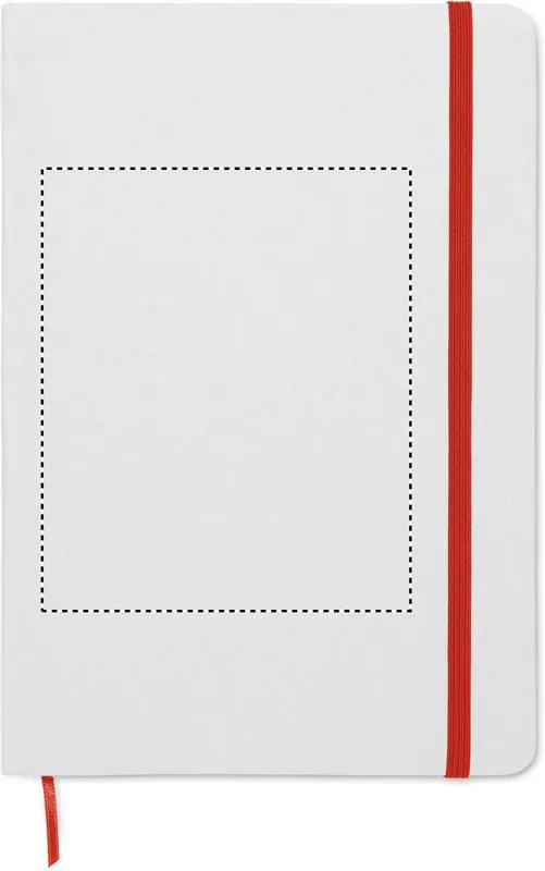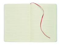 A5 keménytáblás jegyzetfüzet, 70%-ban újrahasznosított tejesdoboz csomagolásból és 30%-ban újrahasznosított papírból készült borítóval. Cérnafűzött. 160 vonalas oldal (80 lap) újrahasznosított papírból. Elasztikus zárópánt és könyvjelző szalag, melyek színe a gravírozás után, a fehér borító réteg alól megjelenő színhez illeszkedik.