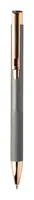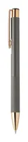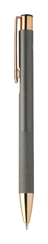Újrahasznosított alumínium golyóstoll matt felületű testtel, texturált markolattal és rózsaarany részletekkel. Speciális bevonattal a tükörlézeres gravírozáshoz rózsaarany színben. Kék tollbetéttel.