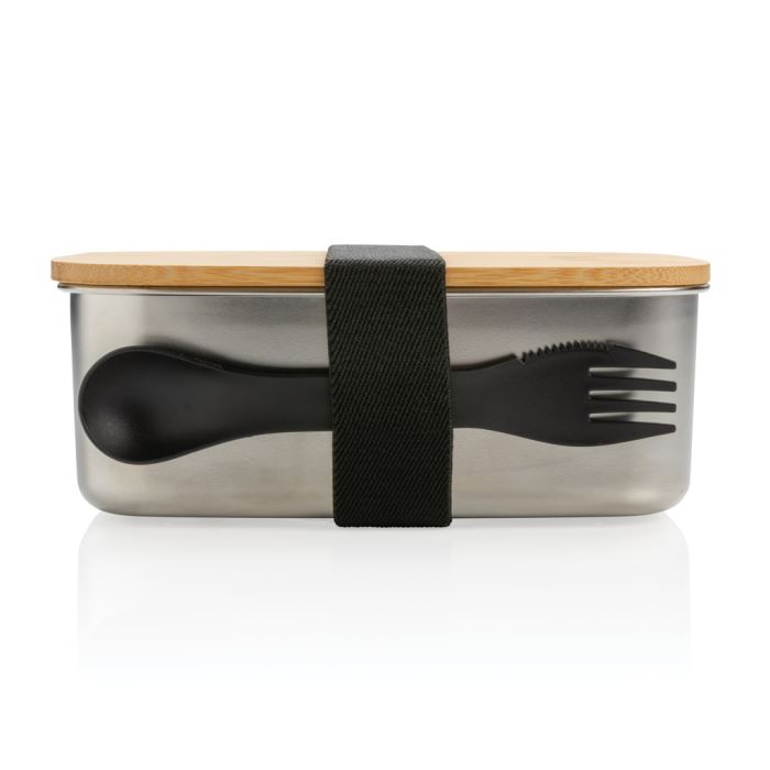 Élvezze az ízeket ebből a rozsdamentes acél ételhordó dobozból, bambusz fedővel. Gumis pánttal és multifunkcionális evőeszközzel ami kanálként és villaként is használható. Mikróba vagy sütőbe nem rakható. Kizárólag kézi mosás ajánlott. Űrtartalma 0,9 liter.