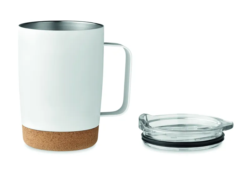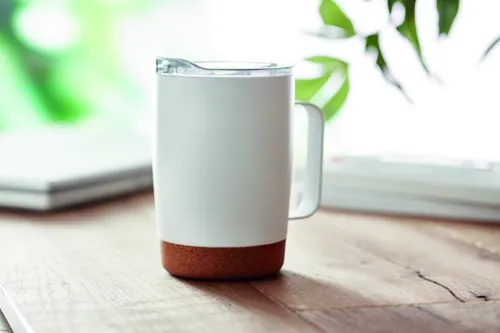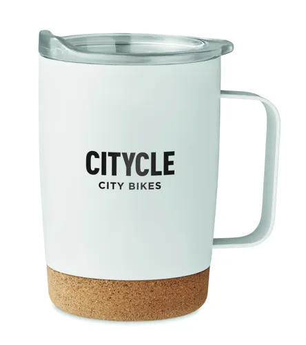 Duplafalú, rozsdamentes acél pohár parafa alappal és csúsztatható ivórésszel ellátott fedéllel. Űrtartalom: 300 ml.A parafa 100%-ban természetes anyag. Szerkezeti jellege és felületi porozitása miatt az egyes tárgyak végső emblémázási eredménye eltéréseket mutathat.