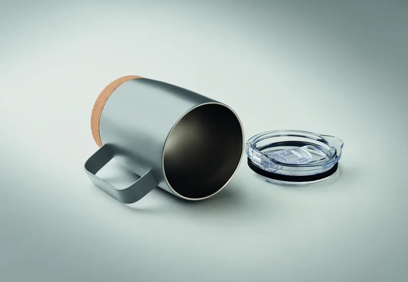 Duplafalú, rozsdamentes acél pohár parafa alappal és csúsztatható ivórésszel ellátott fedéllel. Űrtartalom: 300 ml.A parafa 100%-ban természetes anyag. Szerkezeti jellege és felületi porozitása miatt az egyes tárgyak végső emblémázási eredménye eltéréseket mutathat.
