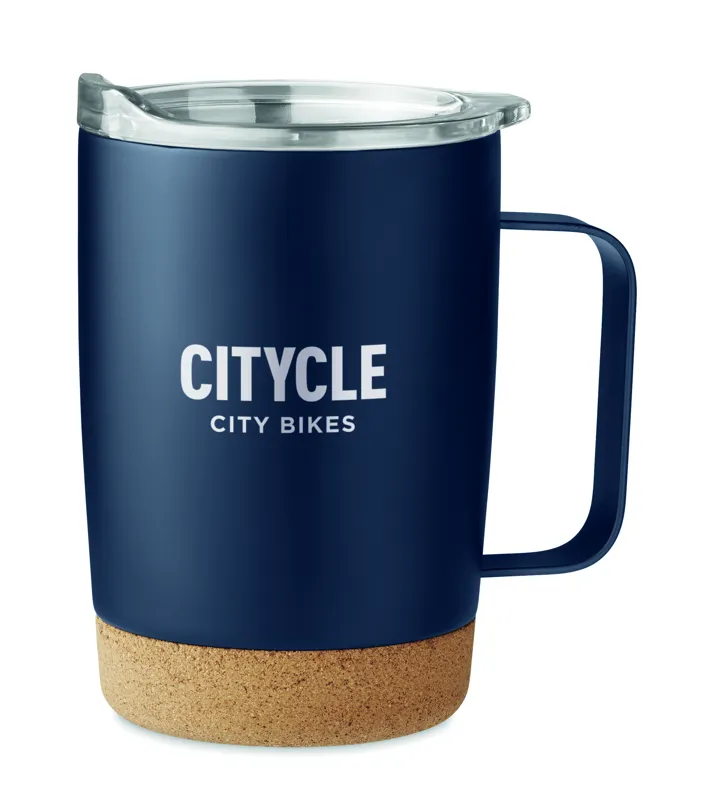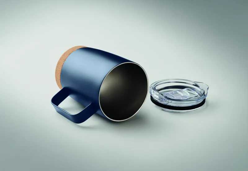 Duplafalú, rozsdamentes acél pohár parafa alappal és csúsztatható ivórésszel ellátott fedéllel. Űrtartalom: 300 ml.A parafa 100%-ban természetes anyag. Szerkezeti jellege és felületi porozitása miatt az egyes tárgyak végső emblémázási eredménye eltéréseket mutathat.