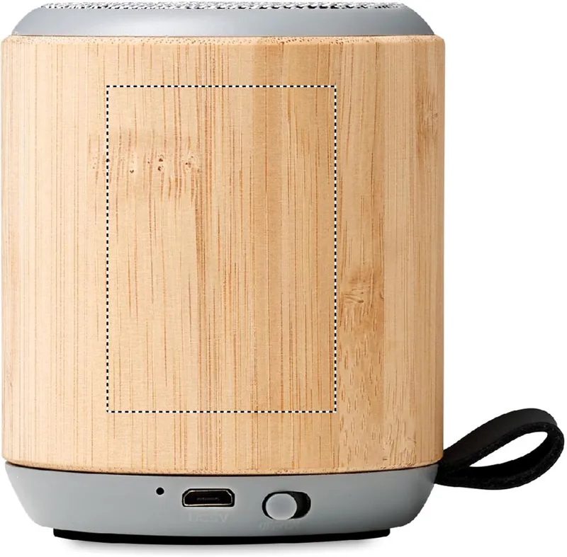 5.3 vezeték nélküli hangszóró bambusz borításban, PU pánttal, a tetején ABS műanyagból. 1 újratölthető 300 mAh lítium-ion akkumulátorral. Teljesítmény: 3W, 4 Ohm. Üzemidő kb. 2 óra. A bambusz természetes anyag, színében, mintázatában és méretében esetenként eltérő lehet.