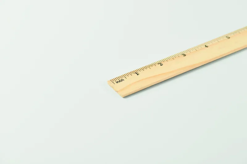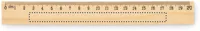 20 cm-es fenyőfa vonalzó, egyik oldalán centiméteres, a másikon hüvelykes skálával.