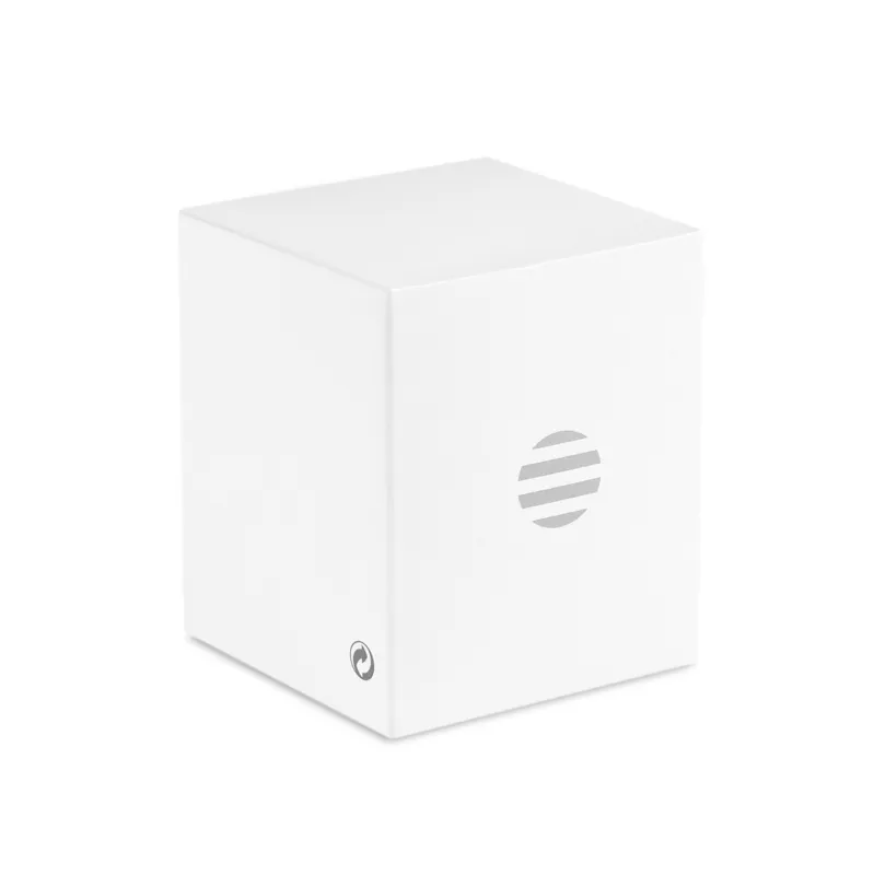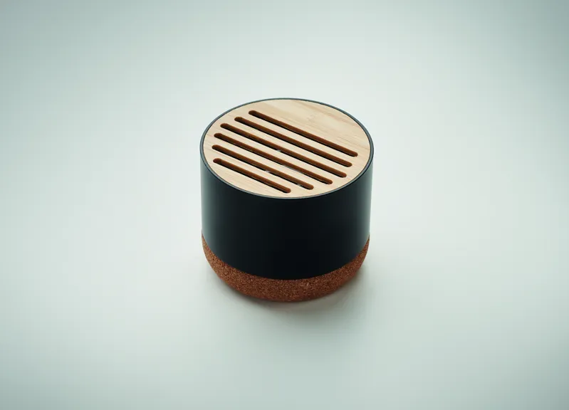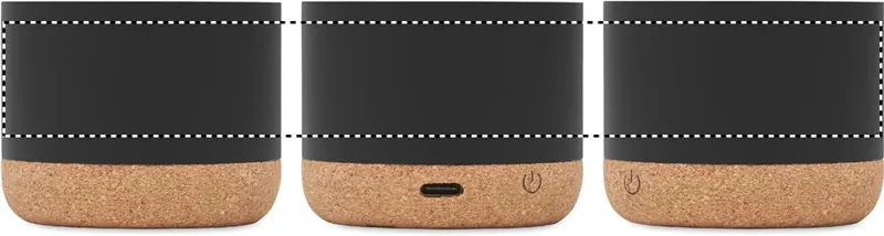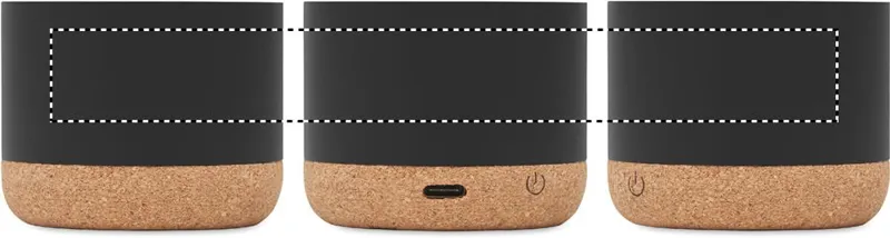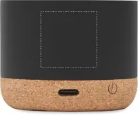 5.3 vezeték nélküli hangszóró újrahasznosított alumínium házban, parafa talppal, a tetején bambusz részlettel. 1 db újratölthető 400 mAh lítium-ion elemmel. Teljesítmény: 3W, 3 Ohm és 5V. Üzemidő kb. 3 óra.
