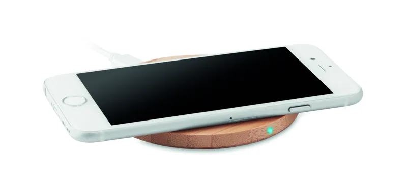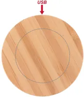 Bambusz vezeték nélküli töltő. Csatlakoztassa a számítógéphez és helyezze rá az okostelefont. A töltést kék fény jelzi. DC5V/1A (5W) teljesítmény. A bambusz természetes anyag, színében, mintázatában és méretében esetenként eltér#