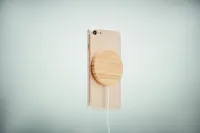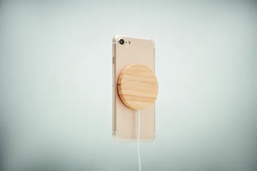 Mágneses vezeték nélküli töltő bambuszból. Gyorstöltést lehetővé tévő DC 9V/1.1A (10W) teljesítménnyel. De a tartozék mágneses fémgyűrű segítségével más, nem mágneses, vezeték nélkül tölthető telefonokhoz is használható. A b