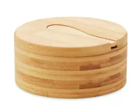 Só- és borstartó bambuszból, beépített kanállal. Két rekesz. Csavaros fedél. A bambusz természetes anyag, színében, mintázatában és méretében esetenként eltérő lehet. Szivárgásmentes.
