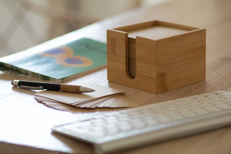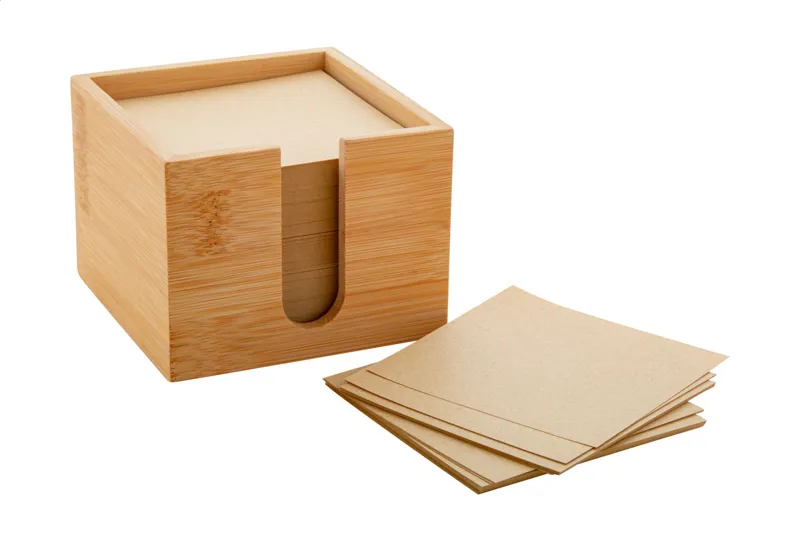 Bambusz jegyzettartó, 600 darab újrahasznosított papírból álló (80 g/m²) jegyzettömbbel.