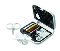 Kompakt varrókészlet alapvető varrókellékekkel műanyag dobozban.