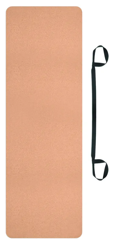 Parafa és TPE anyagból készült jógamatrac, papírcsomagolásban, használati utasítással. Vastagsága 0,4 cm. Tartalmaz egy pamut gyakorlókötelet/ tartópántot. A parafa 100%-ban természetes anyag. Szerkezeti jellege és felületi porozitása miatt az egyes tárgyak végső emblémázási eredménye eltéréseket mutathat.