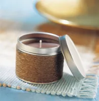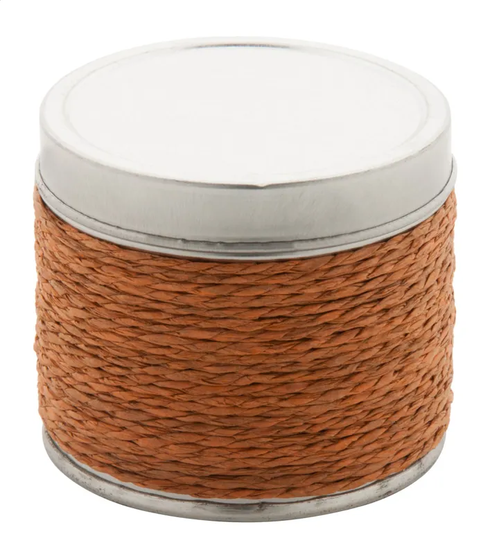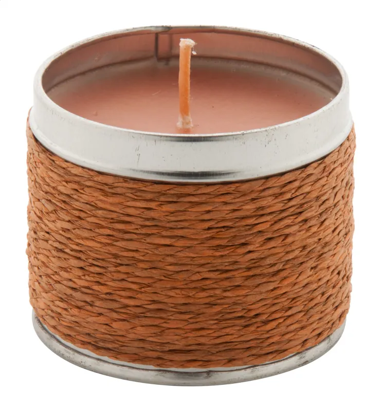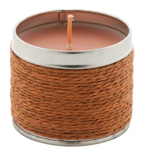 Illatos gyertya, fonállal bevont fedeles fémdobozban. bézs - vanília, narancssárga - narancs, barna - csokoládé