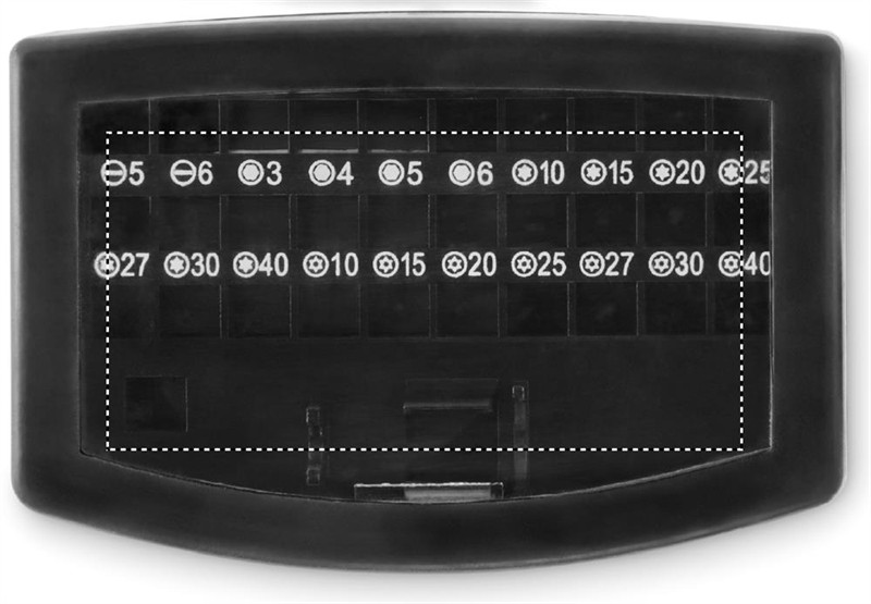32 darabos csavarhúzó bitfej készlet adapterrel.