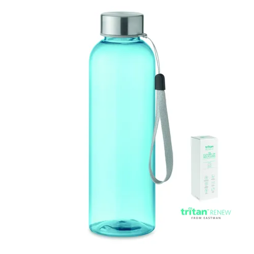BPA-mentes Tritan Renew™ műanyag ivópalack rozsdamentes acél fogantyúval ellátott fedéllel. Szivárgásmentes. Űrtartalom: 500 ml. Ez a termék 50%-ban ISCC tanúsított műanyag hulladékból származik.