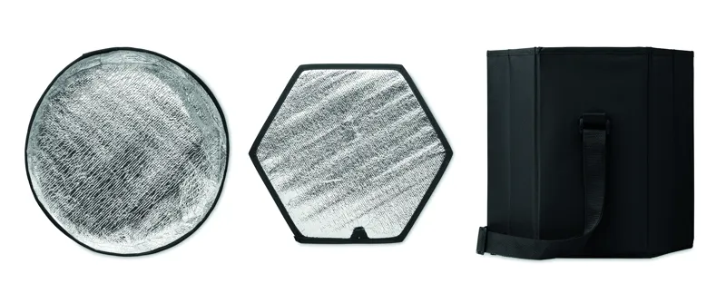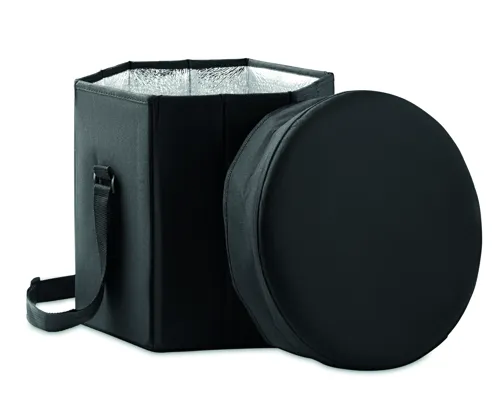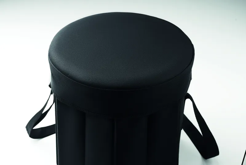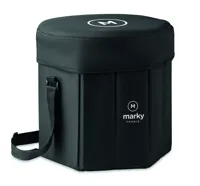 600D poliészterből készült összecsukható ülőke vagy asztal, alumíniumfóliával ellátott, szigetelt hűtőtáskával és vállpánttal. Maximális teherbírás 80 kg.